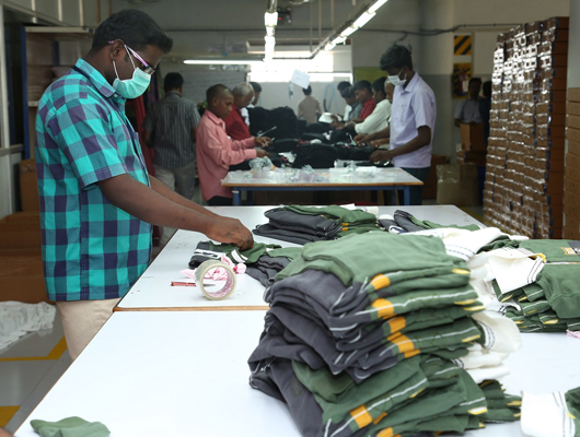 Garments are packed neatly in the designated packs and placed inside the carton or hanger racks for dispatch.